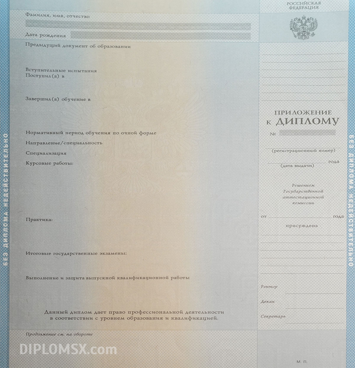 Современное оборудование, опыт и высокая квалификация персонала гарантируют подлинность и качество изготовленного диплома о высшем образовании!